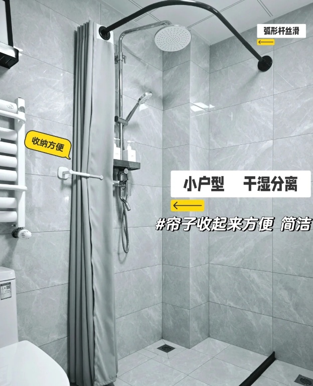 尤其是小户型的卫生间,真心建议你用不占地的浴帘,作为干湿分离设计哦。